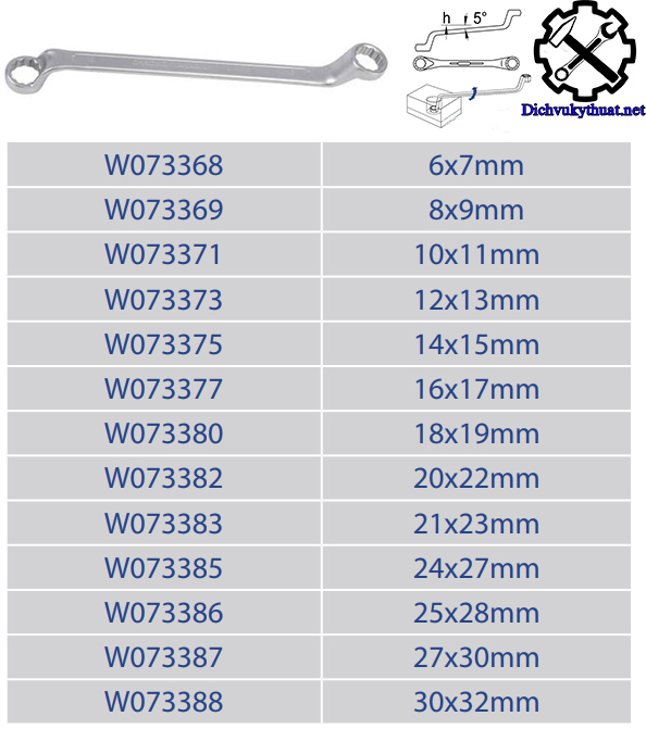 Dải sản phẩm cùng với Cờ lê 2 đầu vòng hệ mét 8×9 mm W073369 chúng tôi cung cấp.